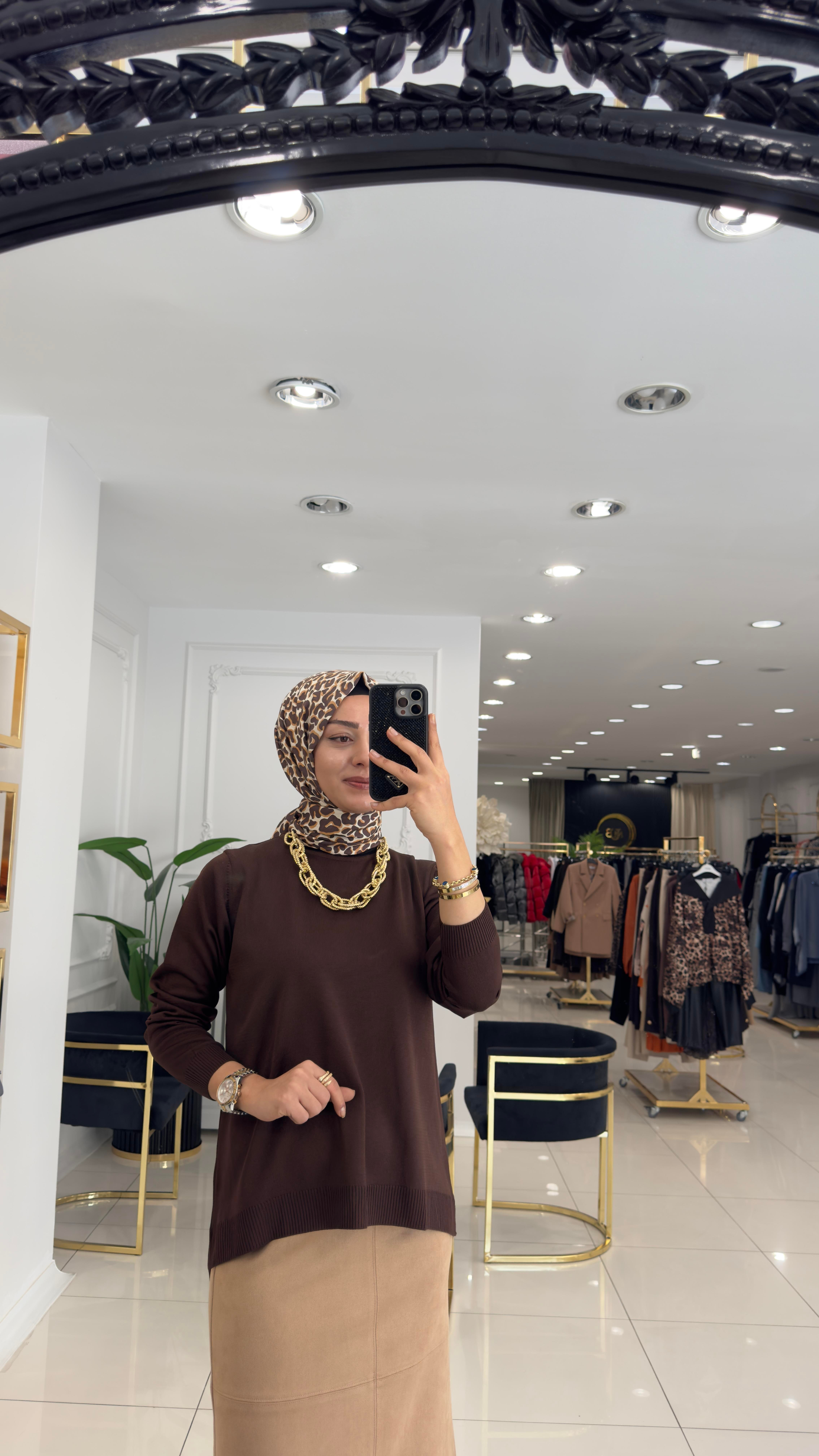 1021 Etek üstü kısa tunik- KAHVERENGİ (Y24BL026)