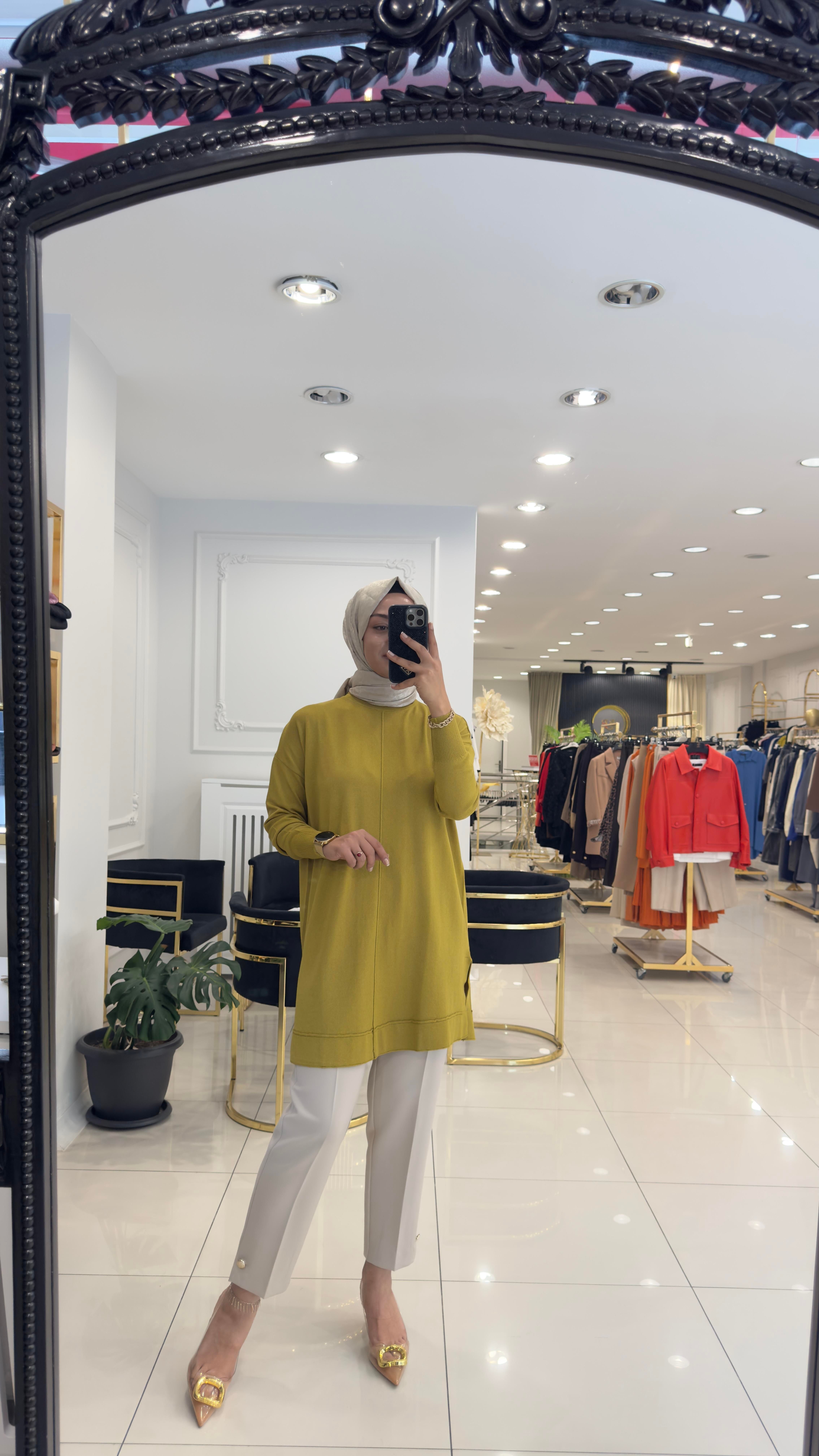 1201 Önden nervürlü triko tunik--Yağ yeşili (Y24TU026)