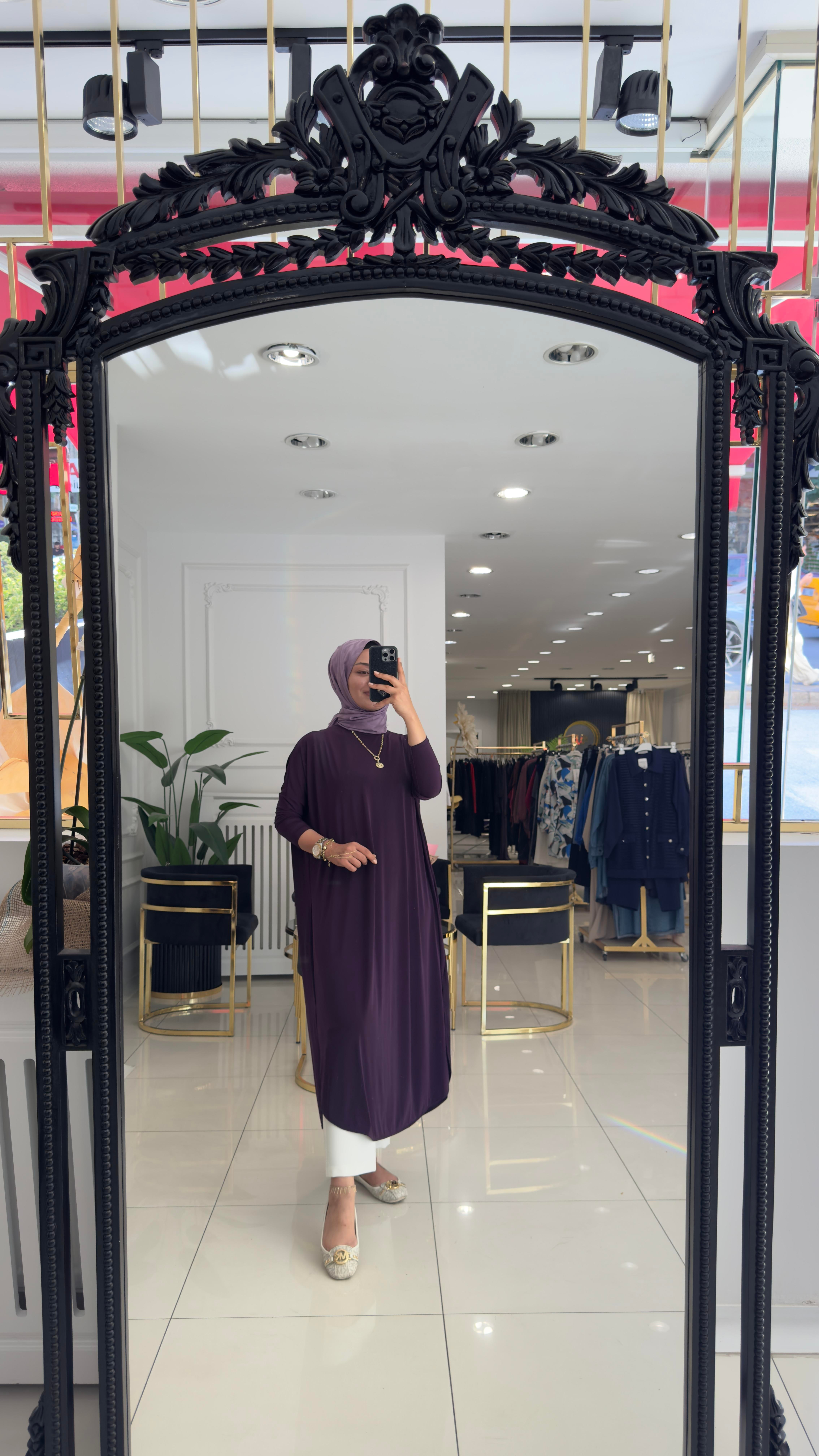 1735 Yanları yırtmaçlı tunik-MOR (Y25TU010)