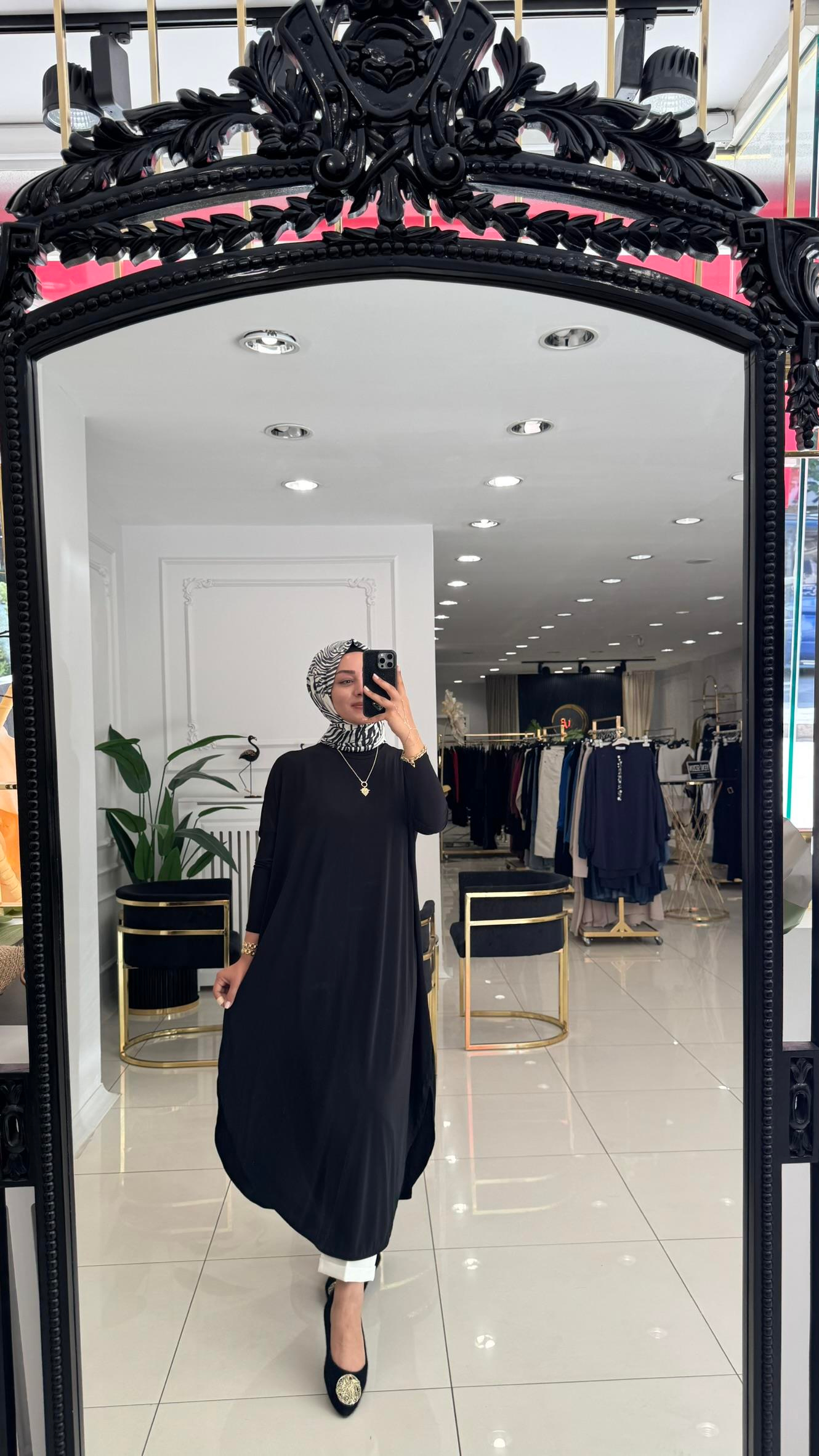 1735 Yanları yırtmaçlı tunik-SİYAH (Y25TU010)