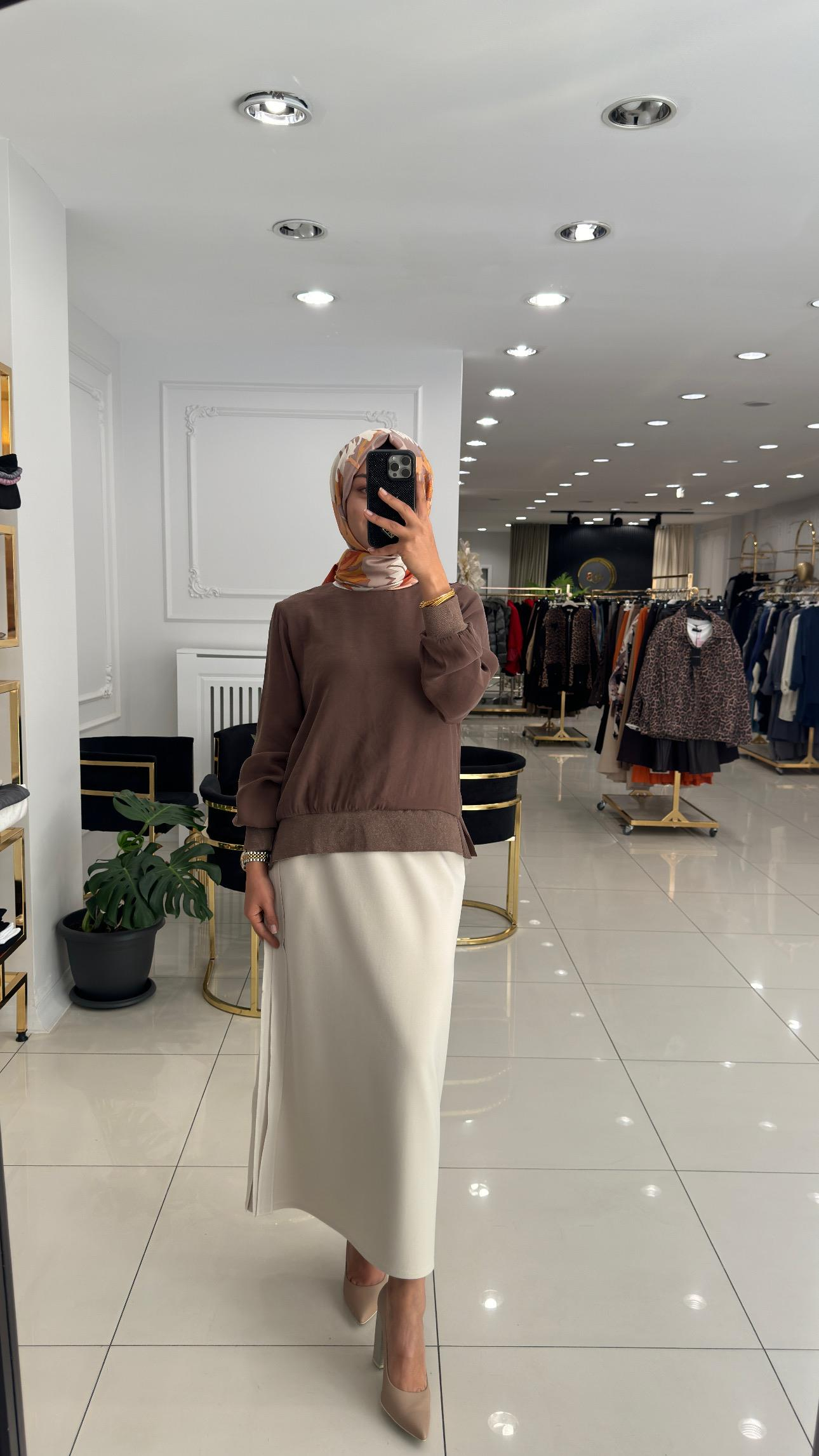 21613 Qupra Bluz-KAHVERENGİ (Y24BL022)