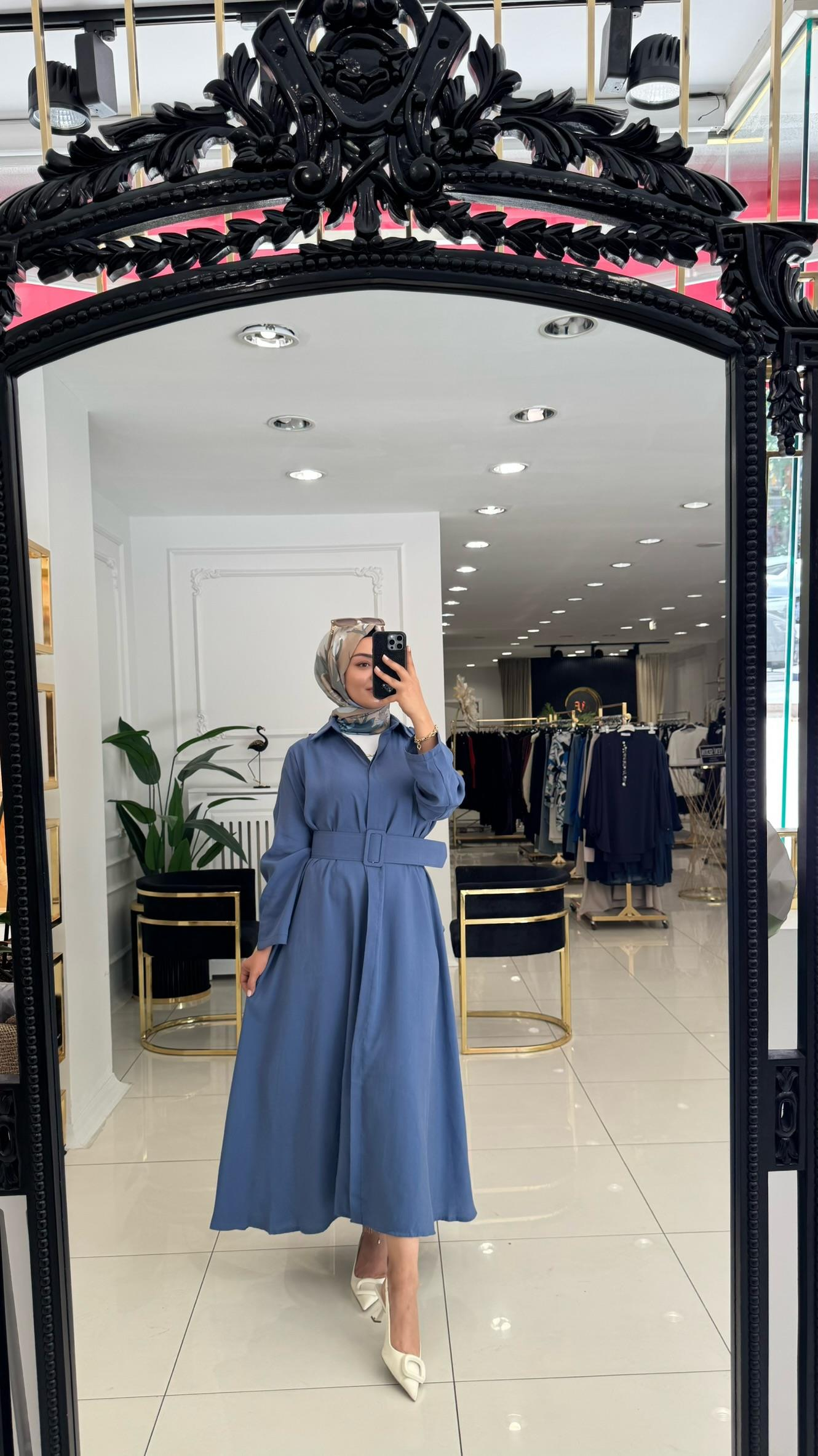 2520 Lina tensel gömlek elbise-İNDİGO (Y25EL014 )