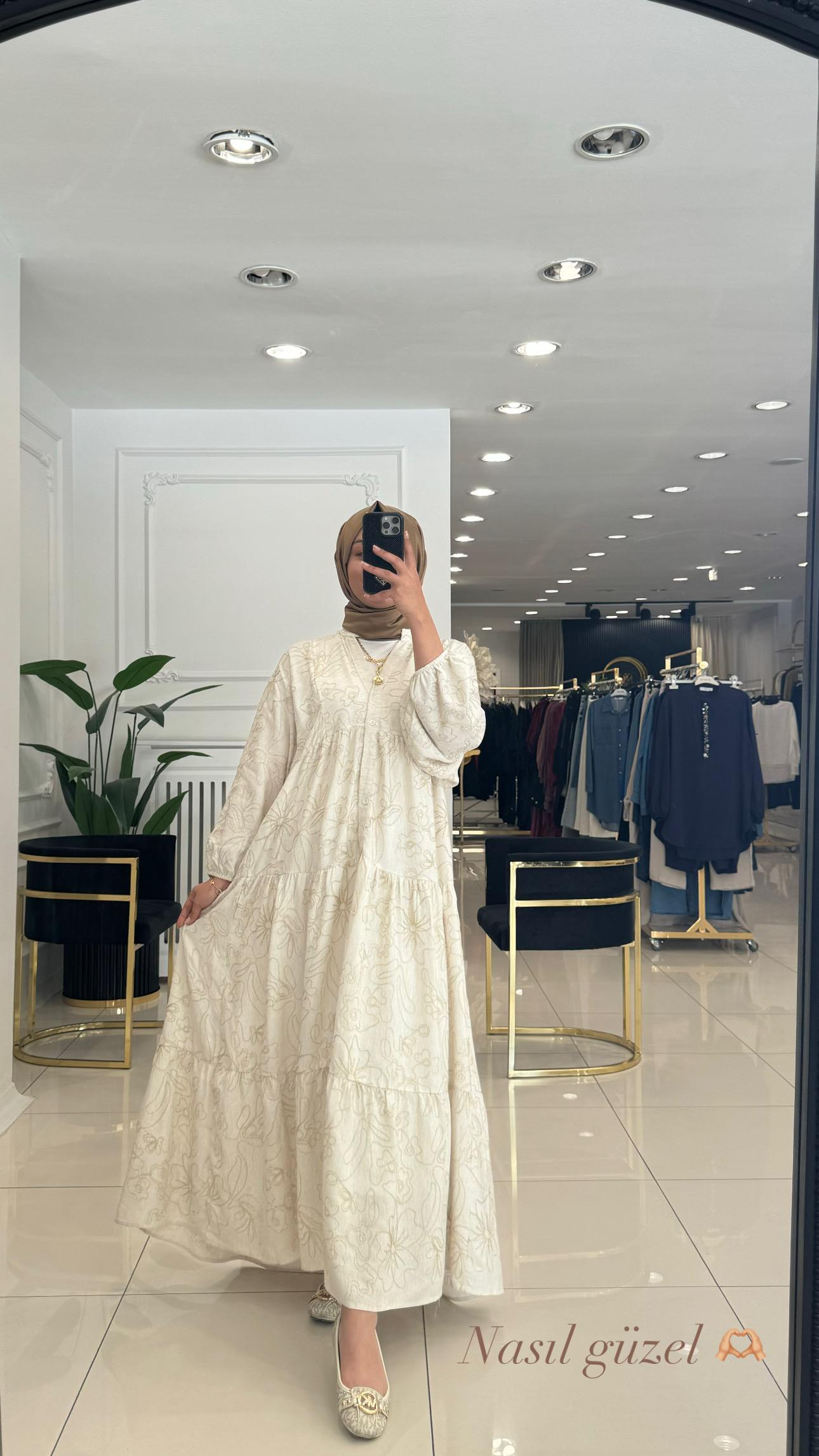 428 Katleya keten elbise-EKRU (Y25EL011)