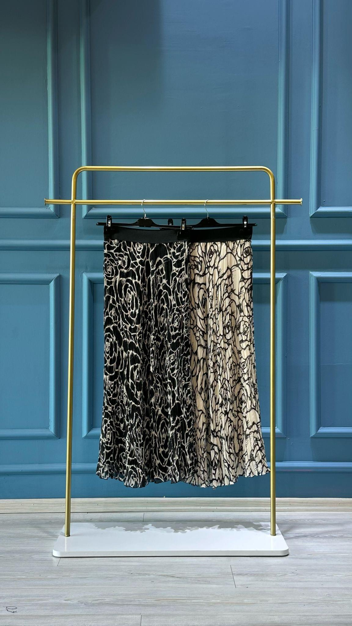 SZ-5433 Gül desen şifon kırıştırma etek-EKRU (Y25ET003)